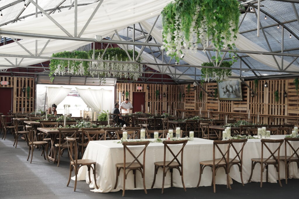 Bathed in natural light, the Greenhouse offers an airy setting that brings the outdoors in. Perfect for ceremonies, receptions, or cocktail hours, this flexible space adapts beautifully to create either a casual or sophisticated setting.